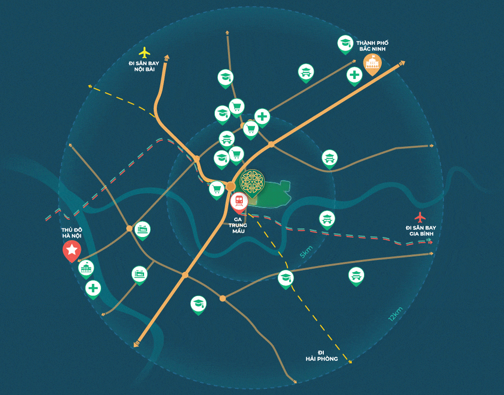 1. Vị trí đắc địa ngay Ga Trung Mầu Hà Nội, sát trục Đại lộ Hà Nội Gia Bình mang đến khả năng kết nối nhanh chóng, thuận tiện.